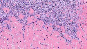 Some myocardial fibers are undergoing necrosis and there
