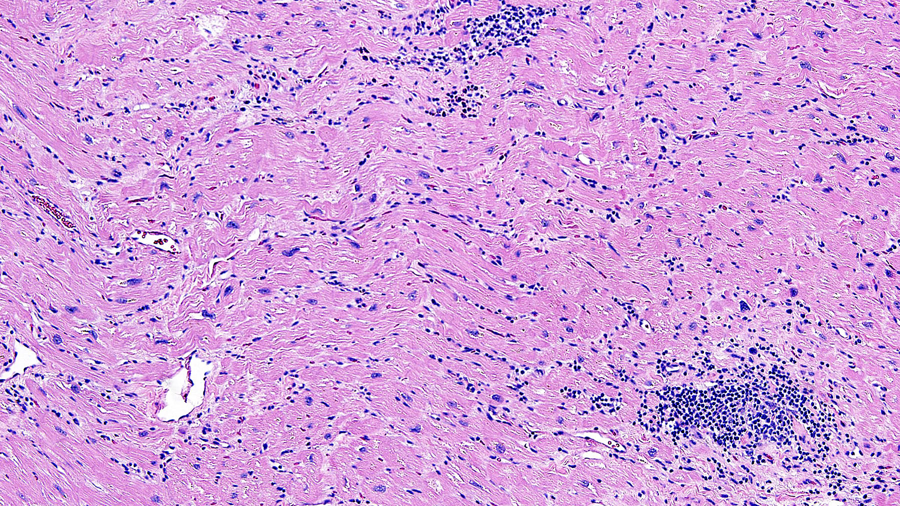cells admixed with scattered eosinophils and diffuse fibrosis. |