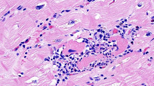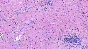 A, B, C, and D) show Chronic interstitial myocarditis with